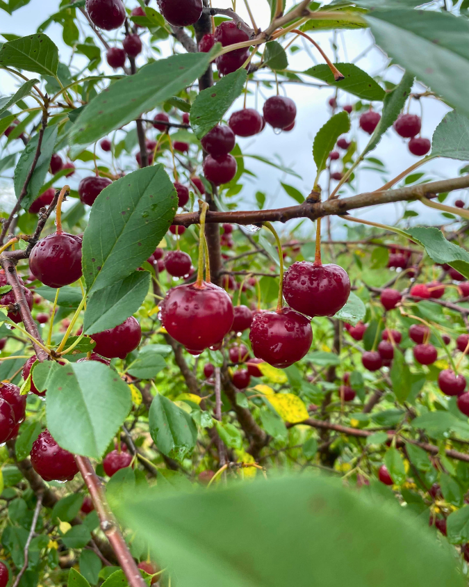Les griottes que nous cultivons font partie d’une nouvelle génération de cerises acides, développées au Canada pour offrir un goût supérieur, une meilleure rusticité et une chair plus savoureuse que les anciennes variétés comme la Montmorency, Meteor ou Evans.